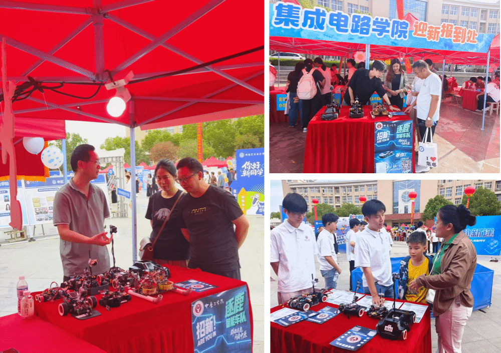 在迎新现场,刚刚斩获全国大学生智能汽车竞赛5项全国一等奖、3项二等奖的“逐鹿智能车队”也闪亮登场,车队队员与新生热情交流、展示赛车,分享竞技与创新的精彩历程,传递“以赛促学、以赛育人”的成长理念,激励更多“芯”生加入科创实践、书写自己的卓越故事。