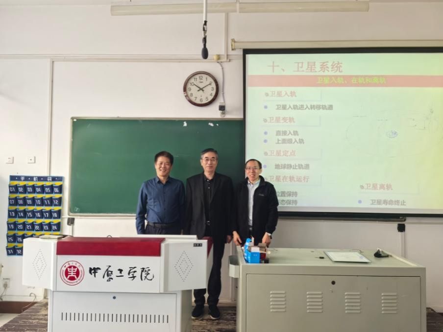 曹桂兴研究员为新生们带来了一场精彩的航天知识科普讲座。凭借三十余年卫星型号研制和工程管理的深厚积淀,他充分考虑学生的知识水平,从万有引力、开普勒三定律等基础动力学原理入手,清晰展现了卫星从发射入轨、在轨运行到最终离轨的全过程,让同学们在掌握基础理论的同时,深刻理解了航天工程背后的科学内涵。两位专家的报告既有专业深度又富实践温度,让新生们深刻感受到"中国芯"在航天事业中的重要作用。