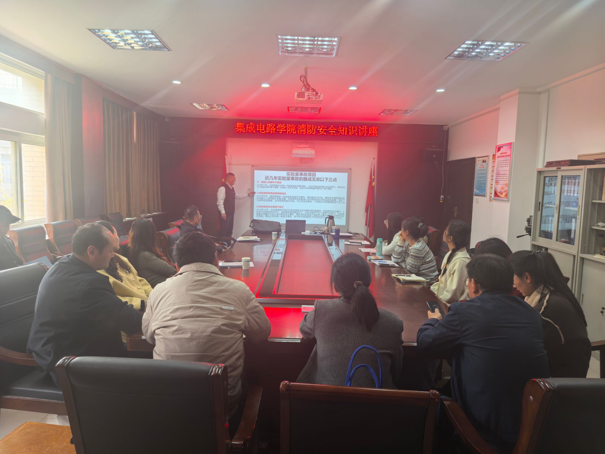 活动中,河南省消防协会教官结合近年来高校及科研场所发生的典型火灾案例,通过图文并茂的讲解和视频展示,深入剖析了火灾的成因、危害及预防措施,重点介绍了实验室、宿舍、办公区等关键区域的火灾隐患识别方法,并详细讲解了初期火灾的扑救技巧、火场逃生路线选择、防烟面罩及灭火器材的正确使用等实用知识。